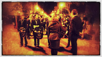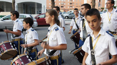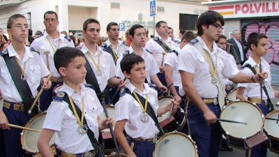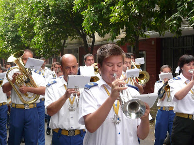 Santiago. Puntuales, como debe de ser, la banda Municipal de La Algaba